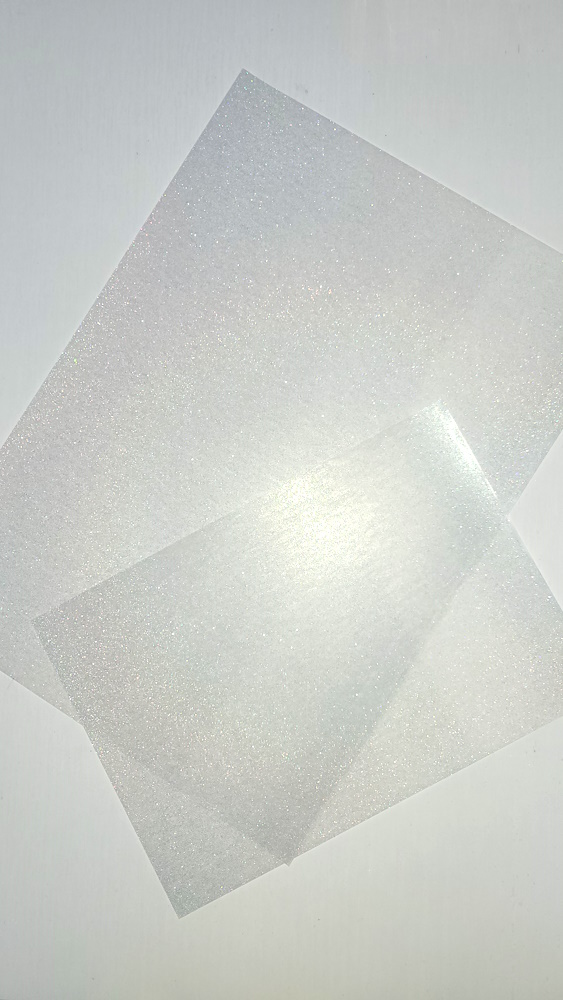- Glitter film for DTF transfers is shiny, with shimmering particles that reflect light - after application, the transfers shimmer nicely and have a shiny finish