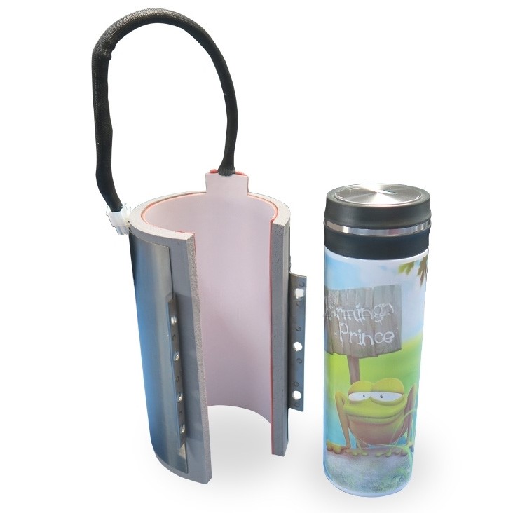 The clamp for transfer presses is cylindrical and is adjusted to the height of mugs, thermoses, water bottles or thermal bottles.