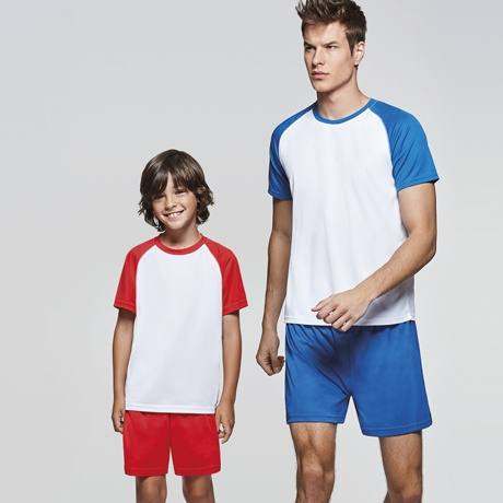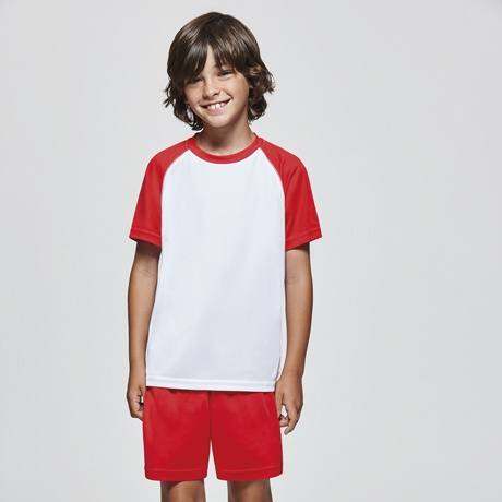 - the sports jersey has short, raglan sleeves in a contrasting color and a round, colored neckline with reinforced covered seams