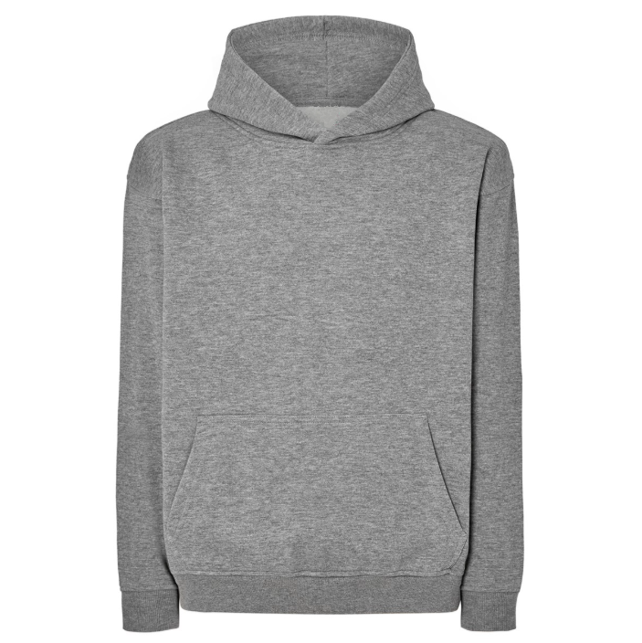 Smooth, grey hoodie men's blouse for printing with a sewn-on pocket (kangaroo / CVC ) OVERSIZE type