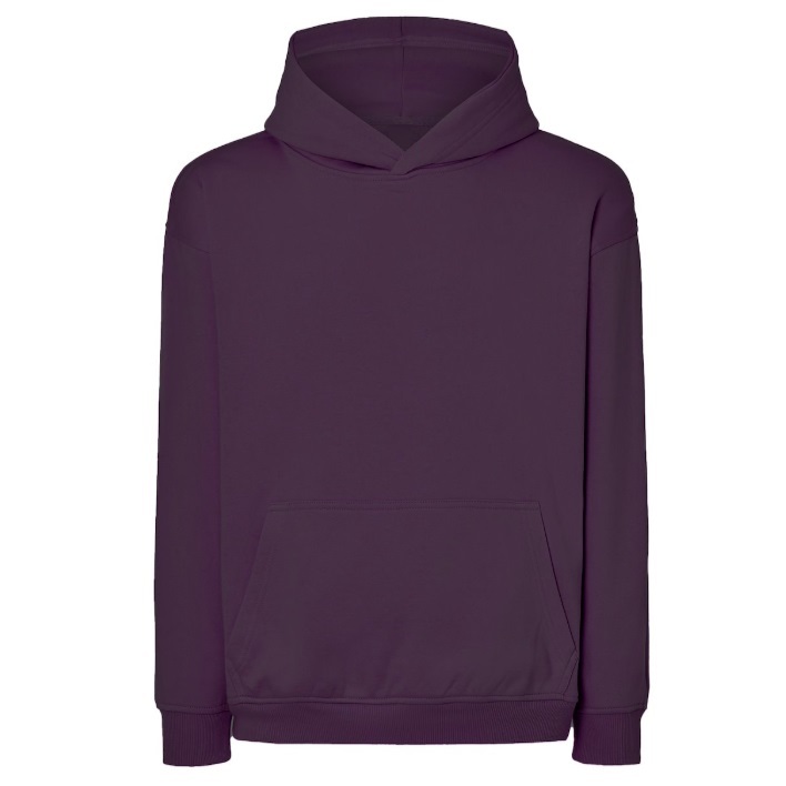 Smooth, dark purple hoodie men's blouse for printing with a sewn-on pocket (kangaroo / CVC ) OVERSIZE type