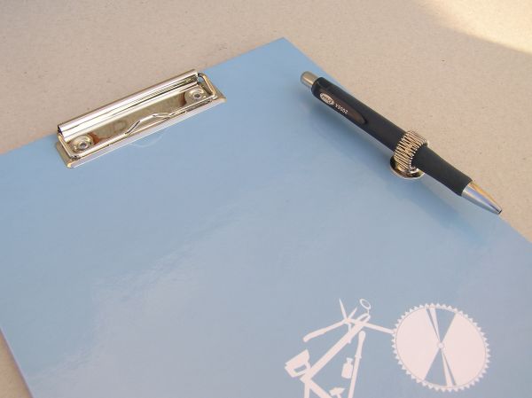 • An adhesive holder helps keep your desk in order, but it can also be attached to a hanging board where employees have to sign