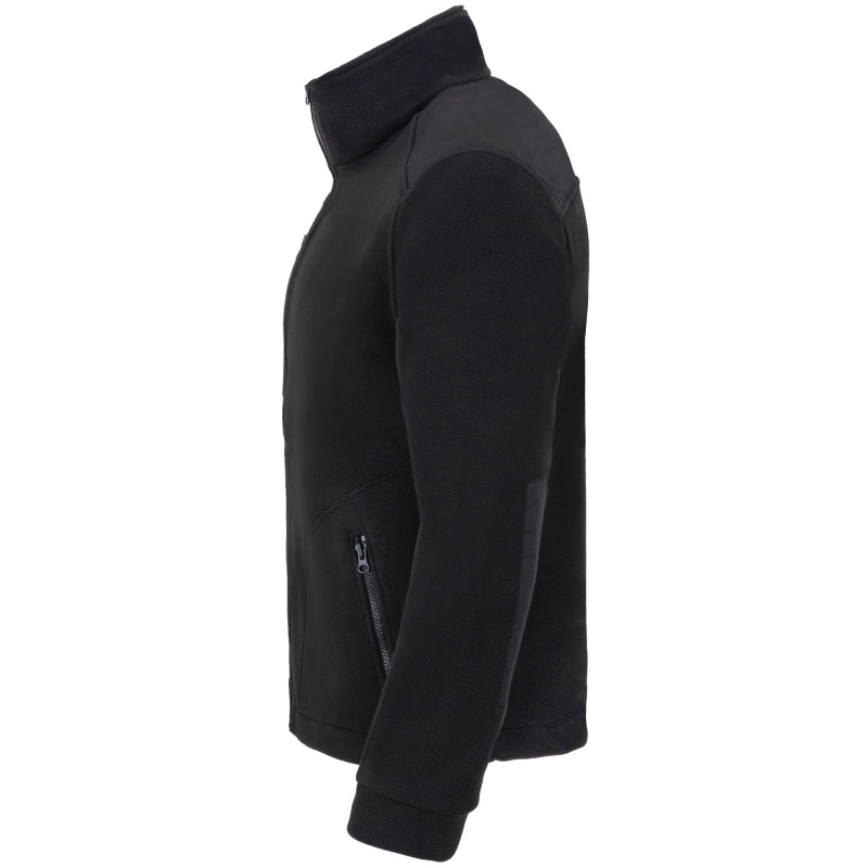 A black fleece sweatshirt with black inserts is a great idea for a universal outfit for an evening walk as well as for work in cold days.