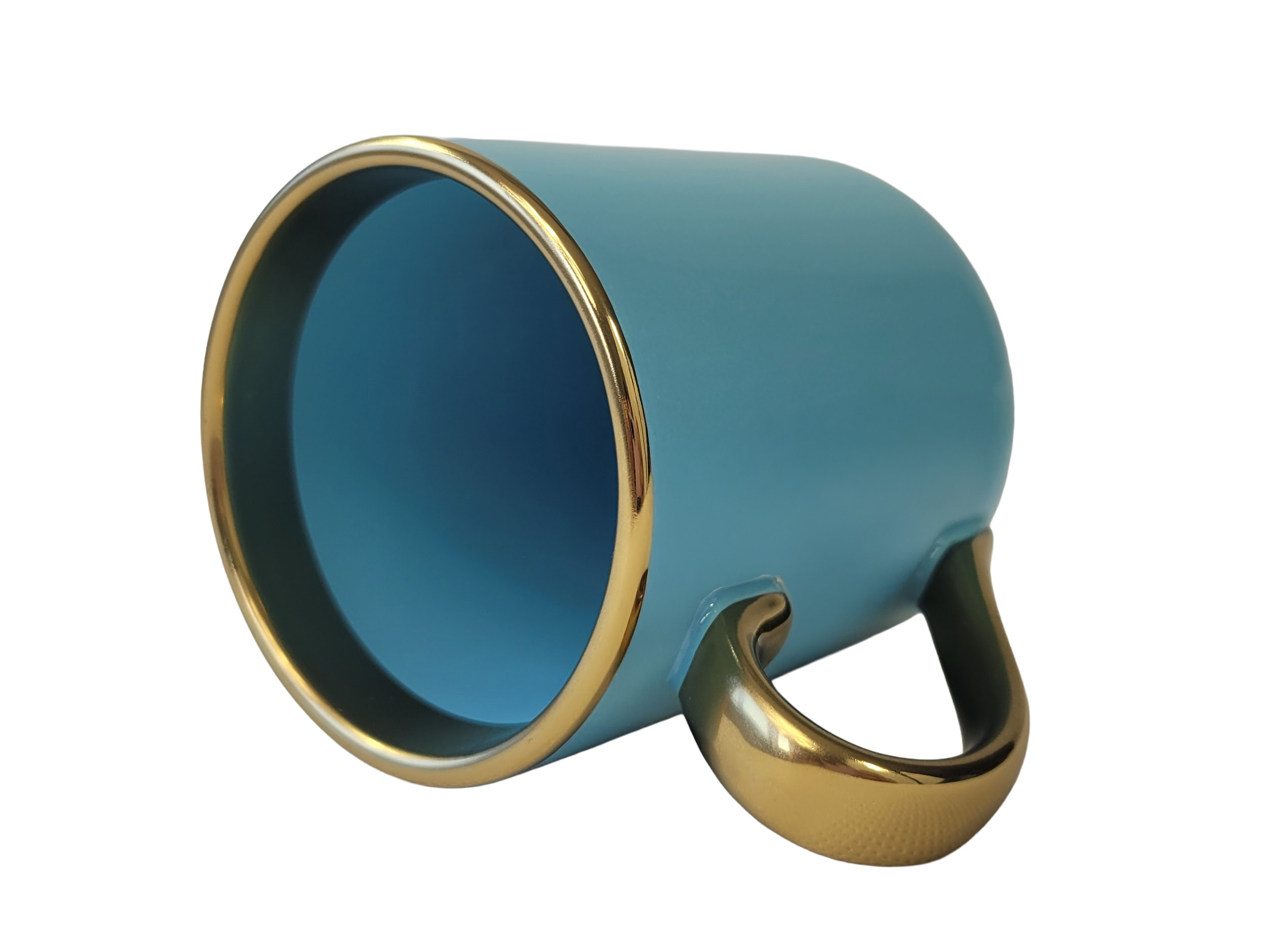 • The coffee mug with a gold rim and handle has a delicate design which, combined with the possibility of printing, makes it perfect both as a gift and for everyday use.