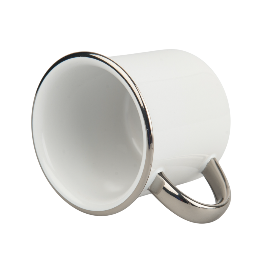 Ceramic mug for sublimation in a retro style with a silver handle and rim